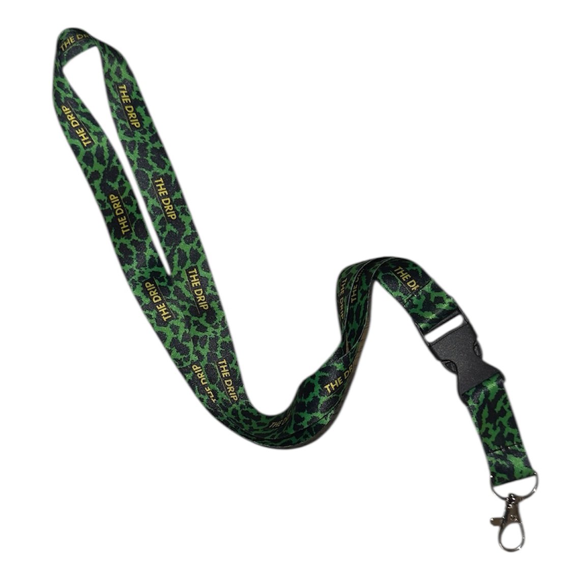 Este lanyard The Drip “Green Madness” combina funcionalidad y estilo con un diseño salvaje en verde y negro que no pasa desapercibido. Fabricado con materiales resistentes y acabado premium, incorpora el logo THE DRIP repetido a lo largo de toda la cinta y un gancho metálico listo para tus llaves, acreditaciones o lo que quieras colgar.